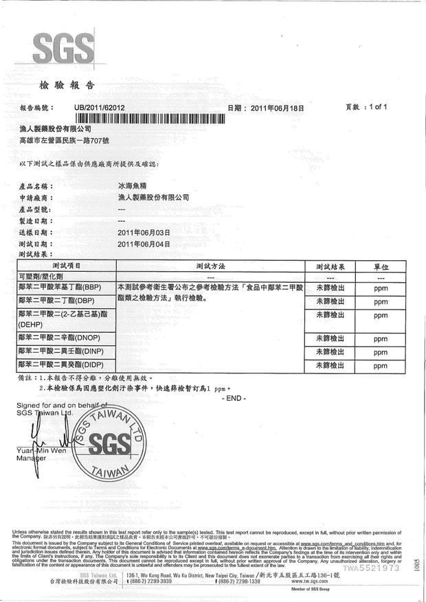 SGS檢驗報告